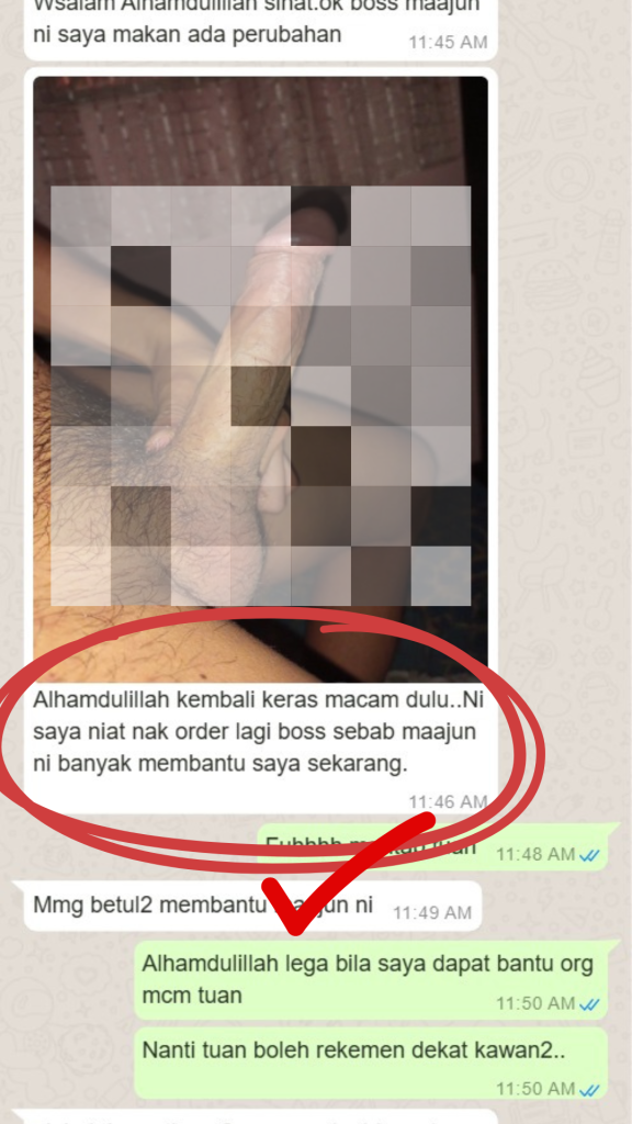 *PENAFIAN: Keberkesanan produk ini bergantung kepada kesesuaian individu. Setiap hasil dari penggunaan adalah berbeza bagi setiap individu. Produk ini akan memberi kesan terbaik sekiranya pengguna mengamalkan dengan cara betul berdasarkan banyak testimoni yang diperolehi. Kita berikhtiar, tuhan yang menyembuhkan.