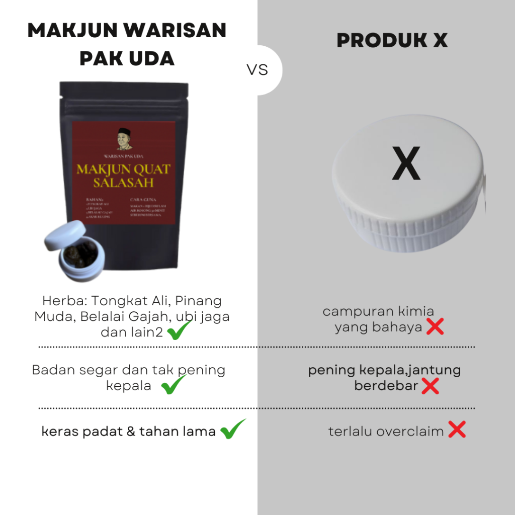 Sebab Makjun Pak Uda ni lulus ujian makmal dan terbukti menggunakan bahan yang berkualiti tinggi.