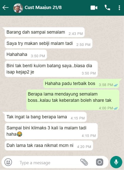 Diestrak dengan menggunakan herba2 terpilih dan gabungan 14 ramuan ajaib yang terbukti meningkatkan performance suami dengan selamat.